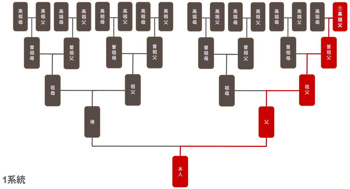 例)自分から1系統(父方のみ)の場合