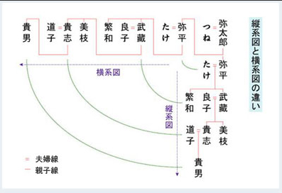 縦系図、横系図のいずれかからお選び頂きます。 ちなみに、それぞれ長所が異なりますので、次をご参照下さい。