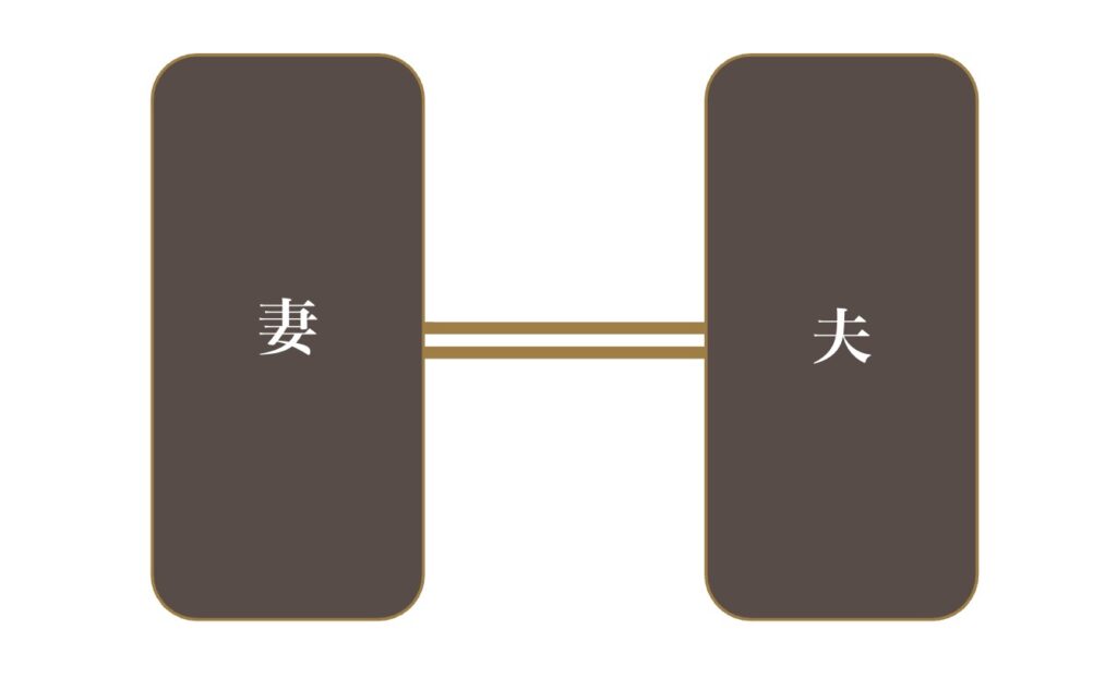 夫婦を表すときは、一般的に二本の横線で結びます。